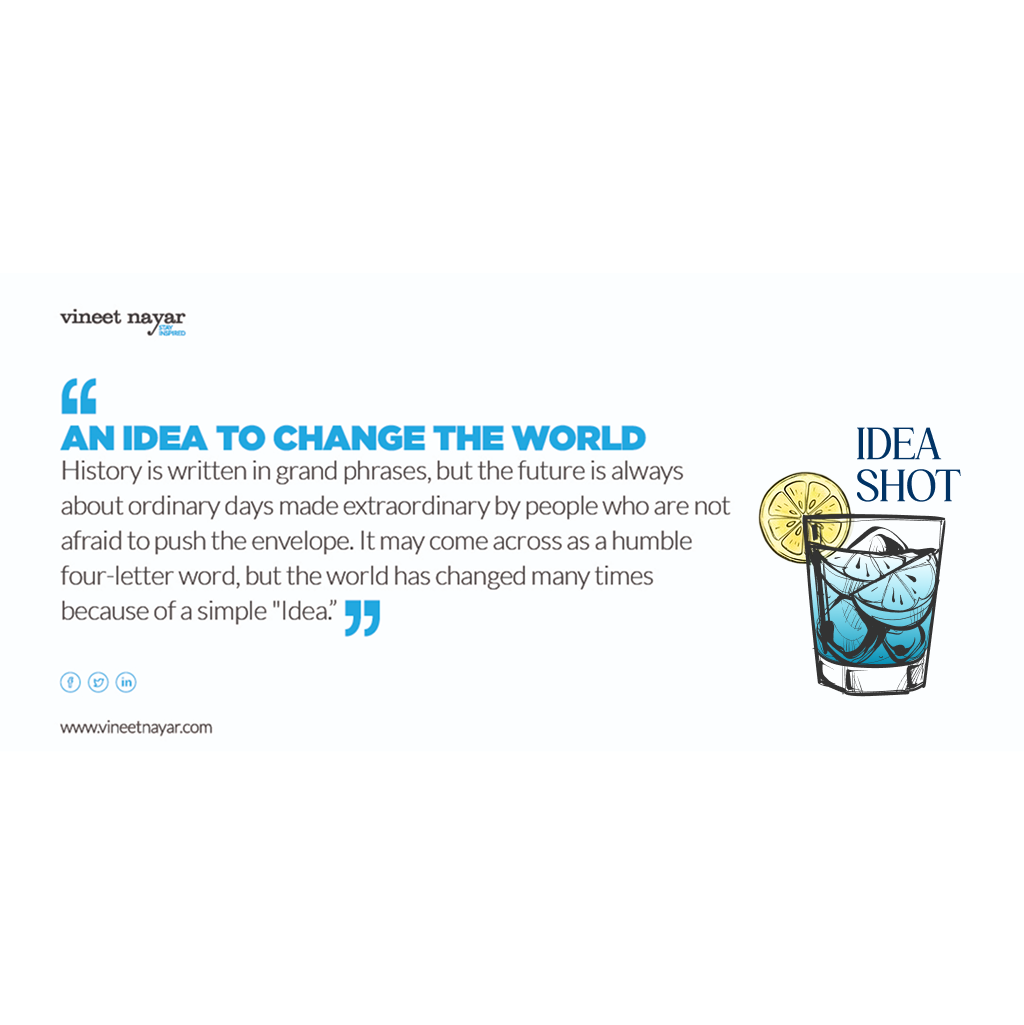 History is written in grand phrases, but the future is always about ordinary days made extraordinary by people who are not afraid to push the envelope. It may come across as a humble four-letter word, but the world has changed many times because of a simple “Idea.”